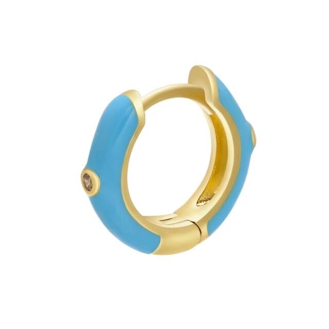 Un pendiente aro dorado y esmalte turquesa