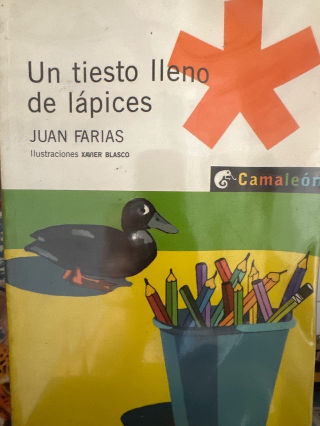 - Portada con un pato y un tiesto de lápices de colores.