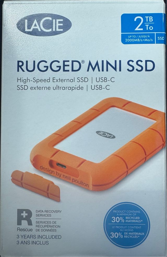 Unidad SSD Rugged Mini de 2 TB de LaCie. Producto original nuevo y precintado; entrega en Madrid, se realizan envios nacionales y contrareembolso.