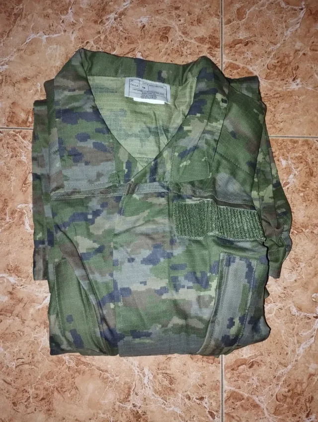 Uniforme militar con estampado de camuflaje. Nuevo a estrenar. - Talla 1N. - Cierre de velcro en la parte frontal.