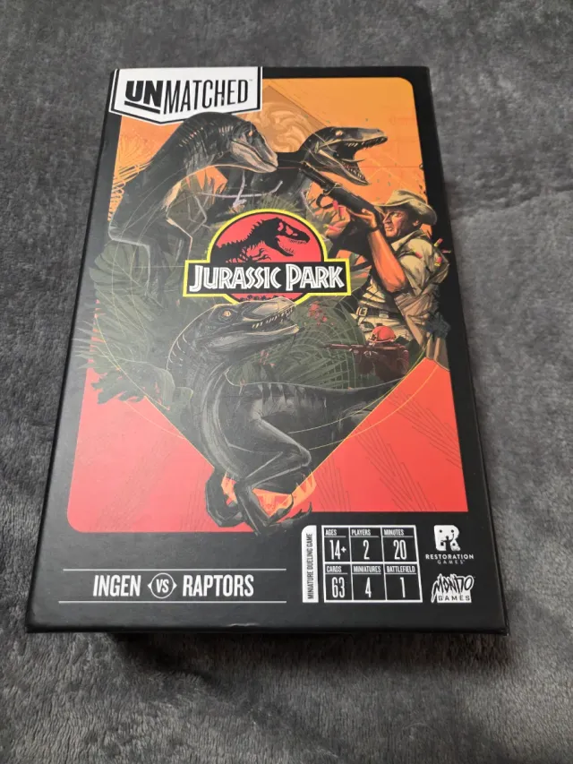 Detalles del productoJuego de mesa Unmatched: Jurassic Park, con la expansión Ingen vs Raptors.