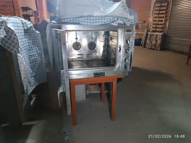 Horno de convección a gas de la marca Unox. Ideal para cocinas profesionales. - Puerta de cristal. - Interior de acero inoxidable. - Panel de control con mandos.