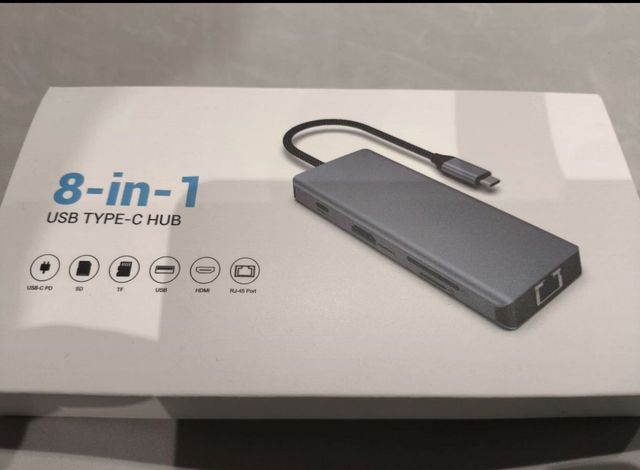 USB C,con salidas USB , Red rj45, HDMI y lector de tarjetas SD