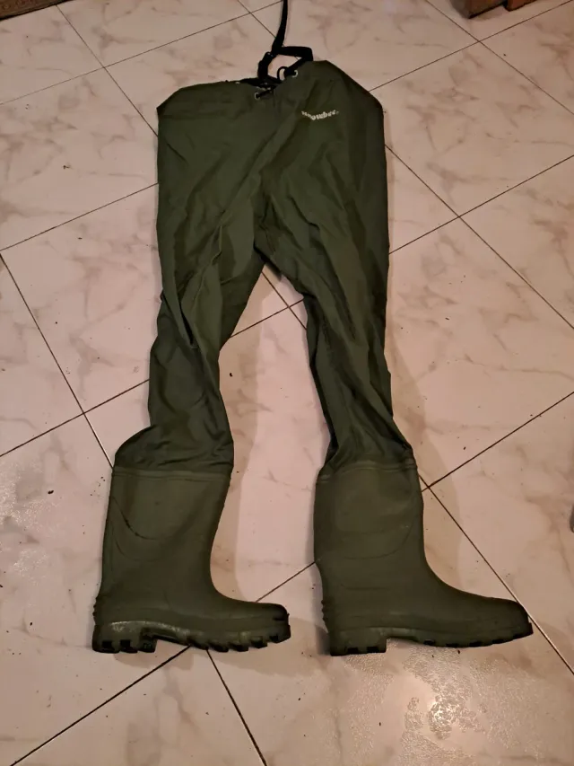 Vadeador de pesca en color verde, ideal para actividades acuáticas. - Material resistente. - Botas integradas.