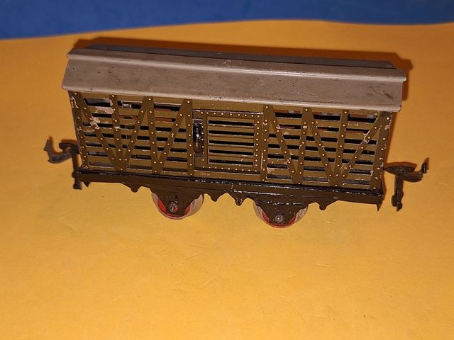 Detalles del productoJuguete antiguo original años 50-60, vagon mercancias cerrado puertas correderas fabricado en alemania con algunos desgastes y marcas del uso y del tiempo pero en estado general bastante correcto, rueda bien pero las ruedas se encuentran en estado regular.