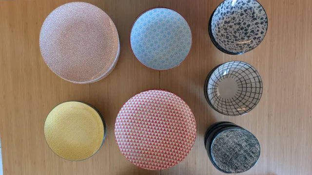 Solo un cuenco, un plato mediano y dos platos grandes tienen un golpecito.