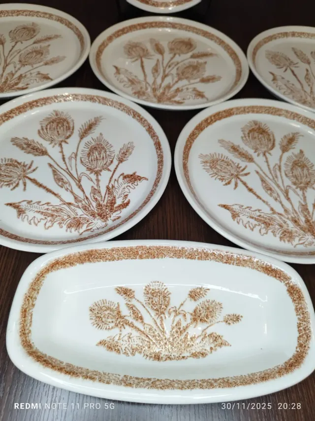 Vajilla Vintage 6 Platos Llanos y Bandeja