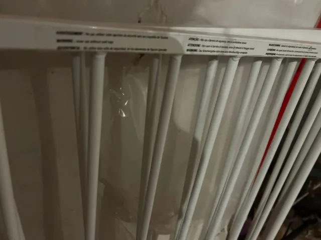Valla de seguridad de metal blanco, ideal para escaleras o pasillos. - Barras verticales de seguridad. - Diseño moderno y discreto.