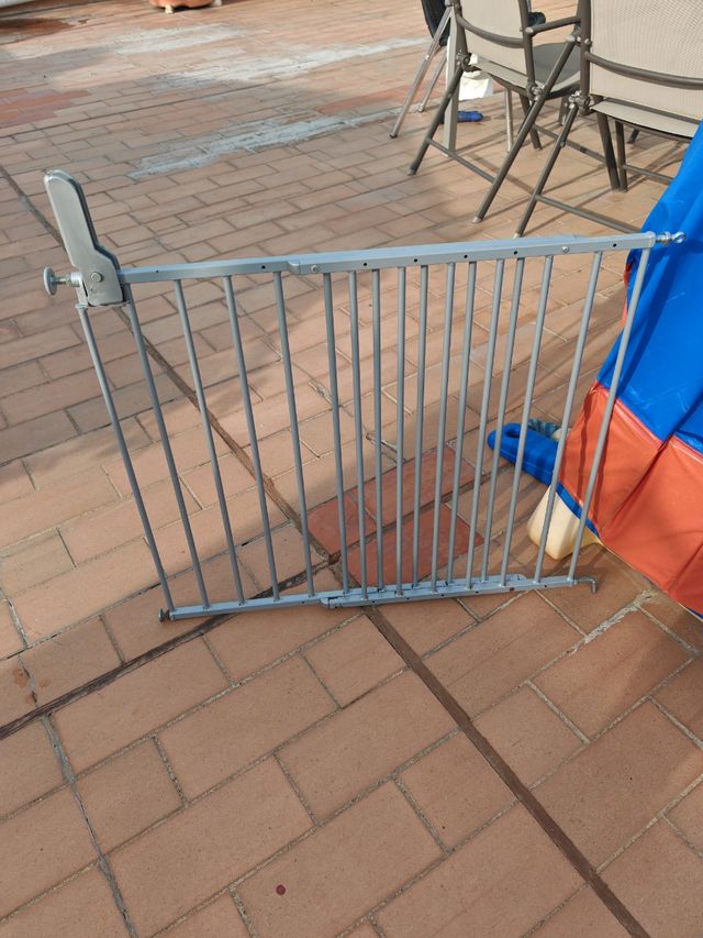 Valla seguridad infantil de metal, es extensible. Faltan los tornillos y los tacos.