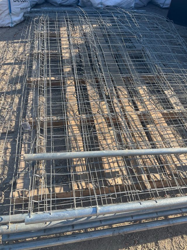 Conjunto de vallas metálicas de malla para delimitar espacios o crear cercados. - Malla de alambre galvanizado. - Estructura robusta.