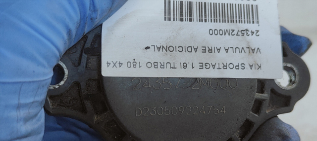Detalles del productoDisponible para adquirir VALVULA AIRE ADICIONAL KIA SPORTAGE 1.6I TURBO 180 4X4 FAP 243572M000 2023, Referencia: 243572M000, ID-176186.