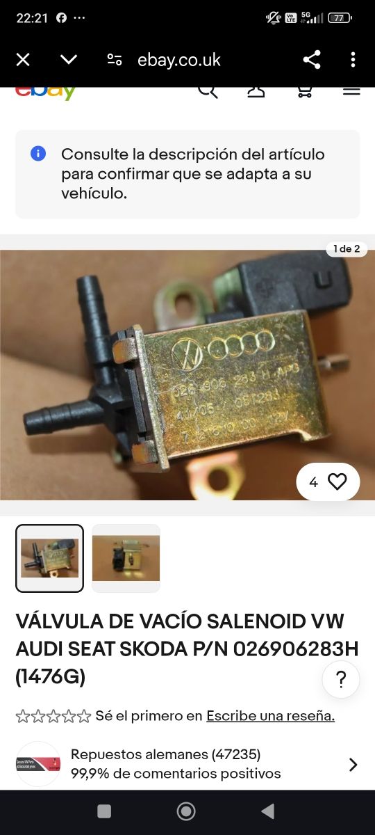 Serenoide válvula de vacío audi seat skoda 026906283h