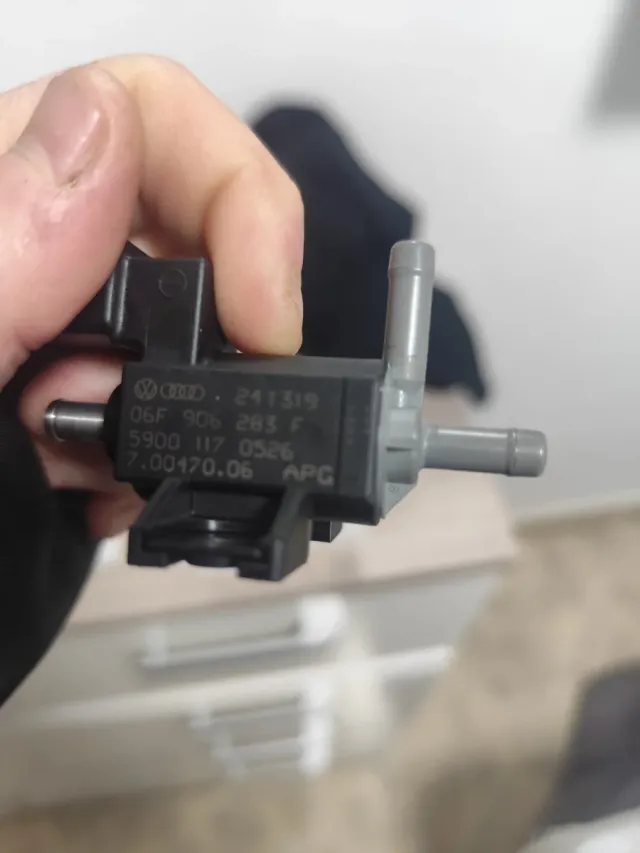Válvula N75 de Volkswagen. - Número de pieza: 06F 906 283 F. - Código adicional: 7.00470.06 APG. - Conexiones para mangueras.