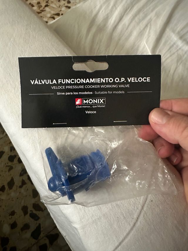 Válvula de repuesto para olla rápida Monix. Pieza de plástico azul. - Válvula de seguridad. - Diseño compatible con ollas Monix.