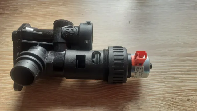 Válvula de repuesto para sistemas Saunier Duval. Pieza de plástico negro con conexiones. Motor estropeado. Solo sirve piezas sueltas.