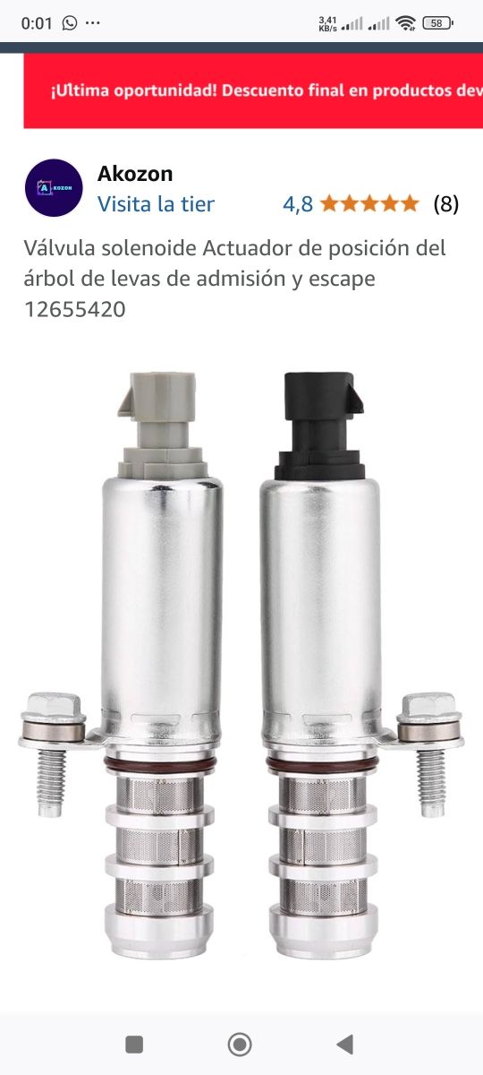 Detalles del productoVálvula solenoide Actuador de posición del árbol de levas de admisión y escape 12655420 válvula de control de aceite para BUICK LACROSSE, REGAL, VERONO, Chevrolet CAPTIVA SPORT, COBALT, EQUINOX, HHR, IMPALA, MALIBU, GMC TERRAIN, PONTIAC G5 G6, PONSA SATURN, confirme los modelos compatibles del producto