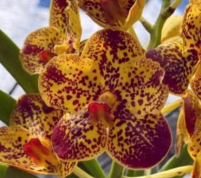 Orquidea Vanda “Yellow tiger” tal cual se ve en las fotos. Floracion como en la primera foto.