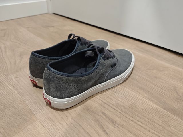 Zapatillas Vans de ante en color gris. Son usadas, pero están en buen estado. - Modelo Authentic. - Suela blanca. - Cordones grises.