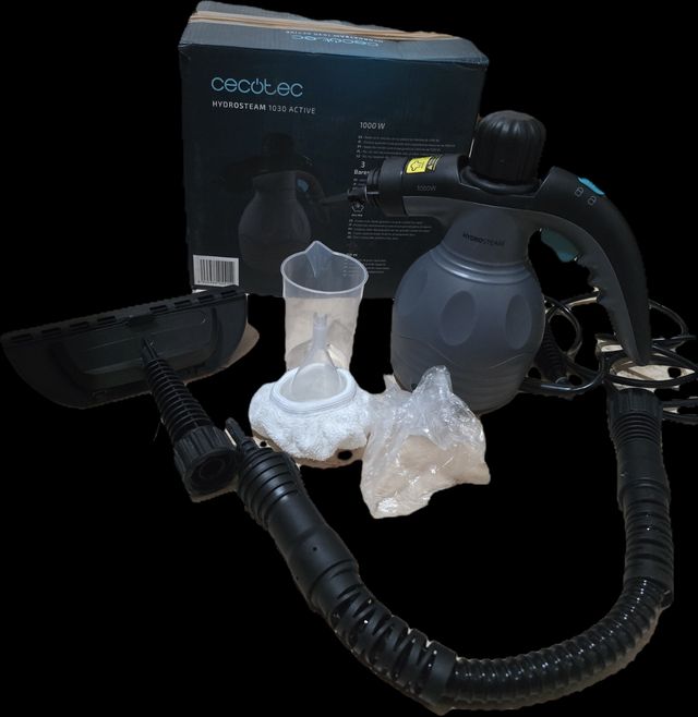 Se vende vaporeta, su estado es impecable. Depósito de 350 ml. 3 bares de presión y 30 g/min de caudal de vapor. 1000W de potencia. Incluye un kit de 9 accesorios.