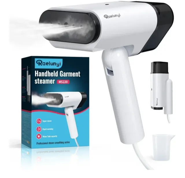 Detalles del productoVaporizador de ropa portátil de la marca Raelunyi, modelo MS220. Ideal para alisar prendas de vestir de forma rápida y eficiente.