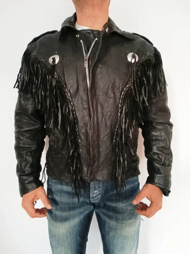Vaquera trampera cuero flecos M/L Medidas indicada