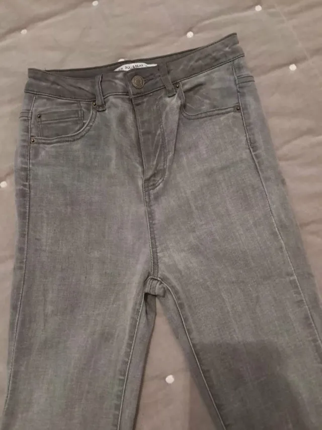Vaquero gris tiro alto, talla 34, pull & bear