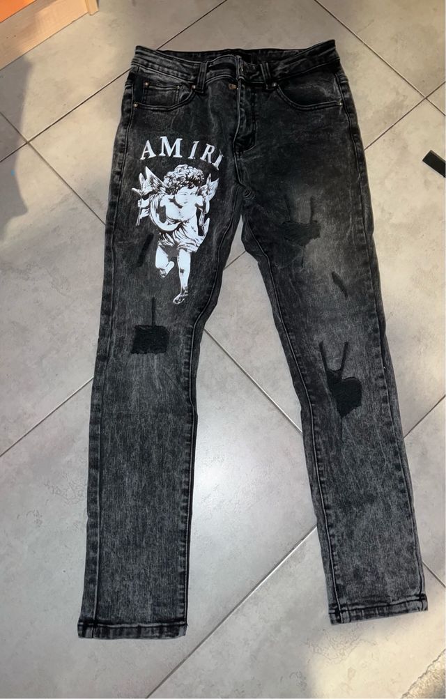 Vaqueros Amiri negros con estampado
