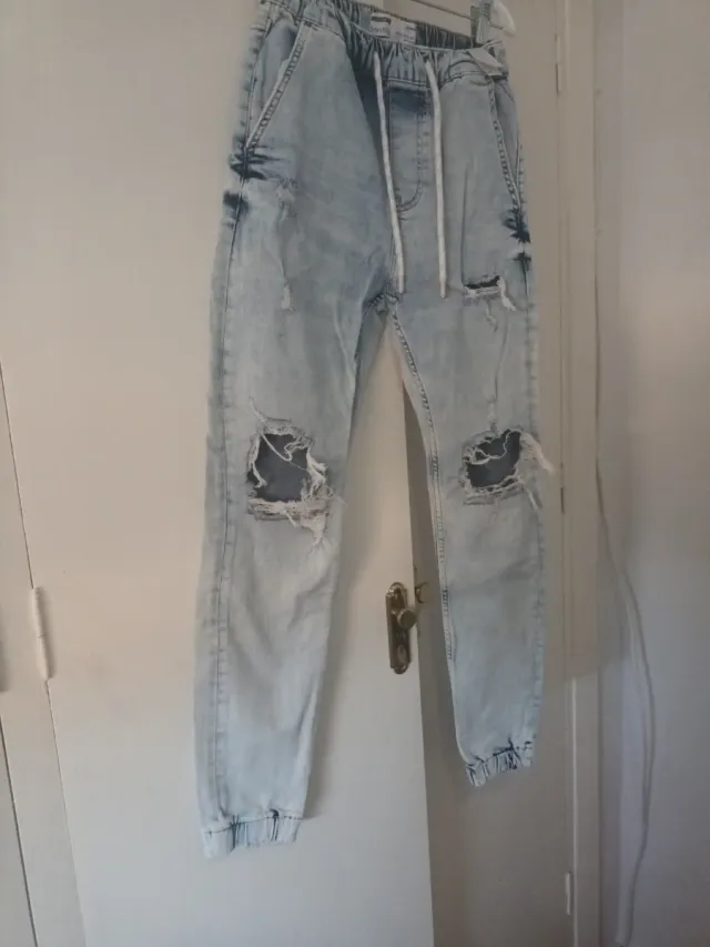 Vaqueros desgastados con cordón Puños en los bajos