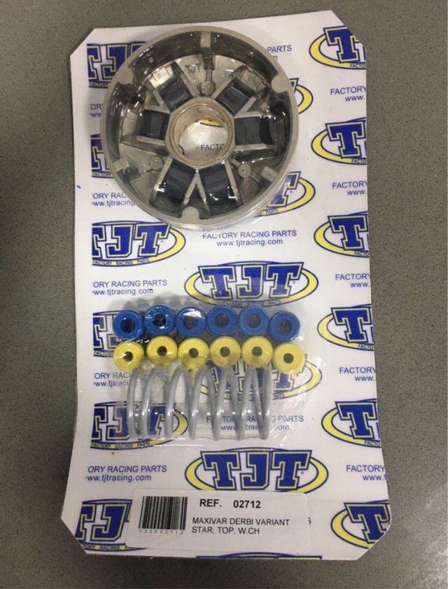 Detalles del productoSe vende variador TJT valido para derbi variant start (pedales) world champion top boy etc.. NUEVO A ESTRENAR. Viene con tres tipos de diferentes pedos de rodillos y un muelle de embrague de embrague mas duro para tener mas salida. Un pedazo de variador para preparaciones de variant.