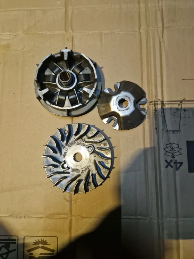 Conjunto de variador para Yamaha Xmax 125cc. Incluye las piezas visibles en la imagen. - Variador principal. - Plato de variador. - Guías.