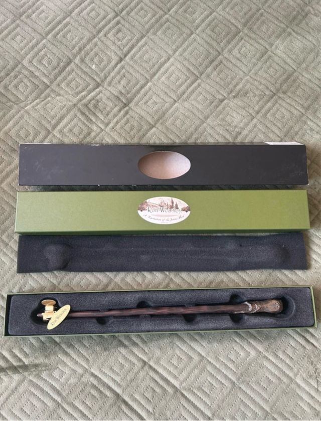 Varita mágica de Ron Weasley, personaje de la saga Harry Potter. Viene en su caja original. - Réplica detallada de la varita. - Incluye caja de presentación.
