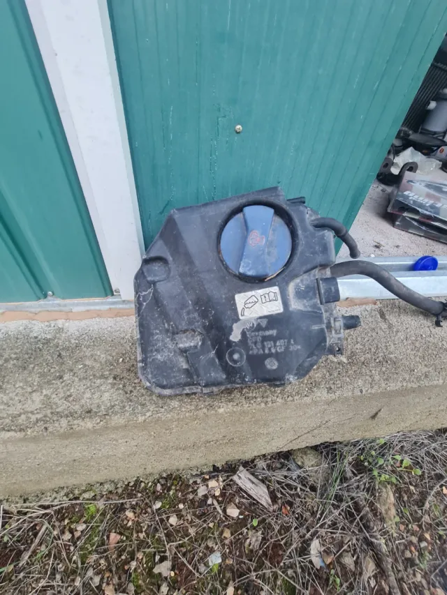 Vaso de expansión para Volkswagen Touareg R5. Pieza de plástico negro con tapón azul. - Referencia: 7L0 121 407 L - Material: PA6 E-GF 30%