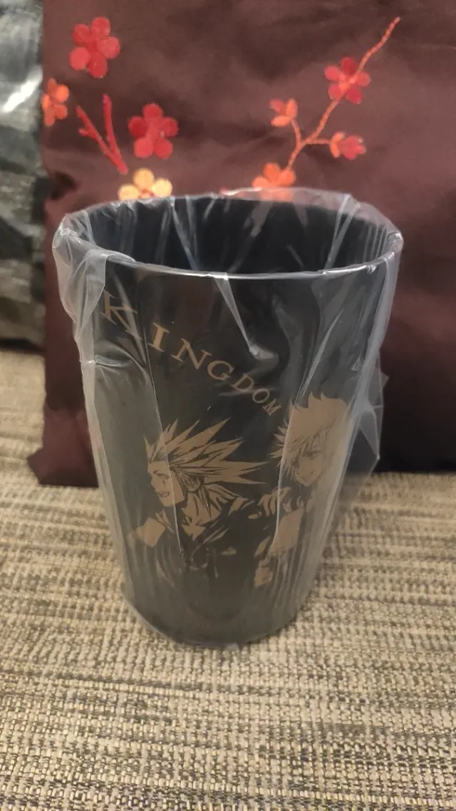 Detalles del productoVaso de diseño de Kingdom Hearts 358/2 Days. Es de plástico, de color negro y dorado. Es oficial de Bandai y exclusivo de Japón de la lotería Ichiban Kuji de Kingdom Hearts Linking Hearts. Está nuevo con su plástico protector, pero sin caja. Más merchandising de KH en mi perfil.