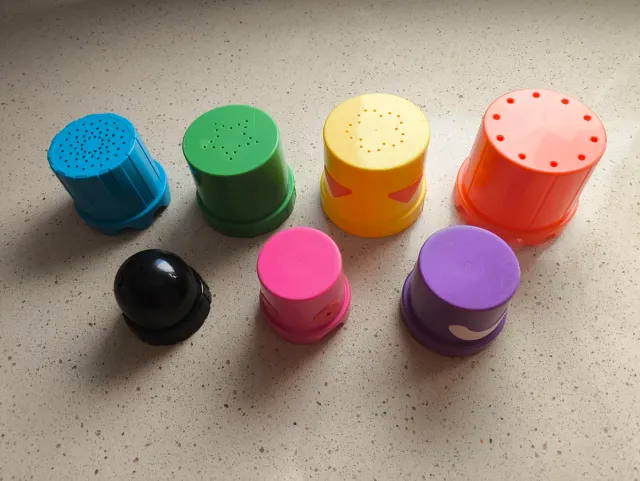 Detalles del productoSet de vasos apilables de colores para niños. Fomentan la creatividad y el desarrollo.