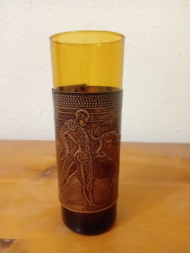 Vasos de vidrio ámbar con funda de cuero