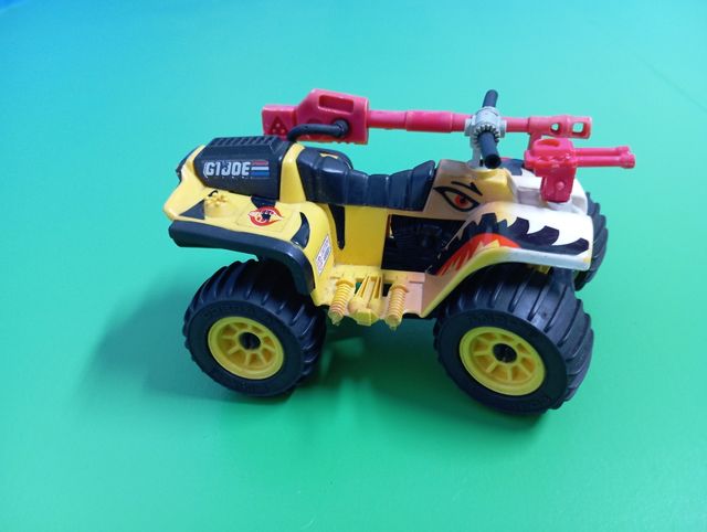 Detalles del productoVehículo terrestre de la marca Gi Joe con diseño llamativo.