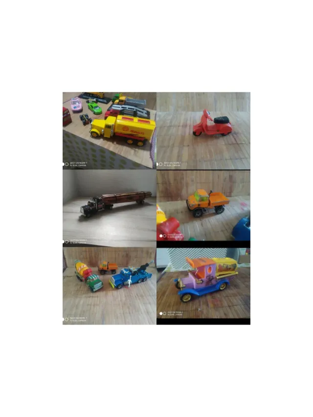 Detalles del productoColección de vehículos a escala fabricados en metal. Incluye camiones, un coche y una moto.