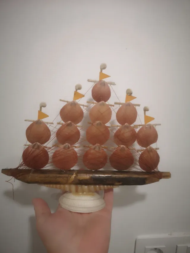 Detalles del productoOriginal velero decorativo hecho a mano con conchas marinas, típico de los años 70.