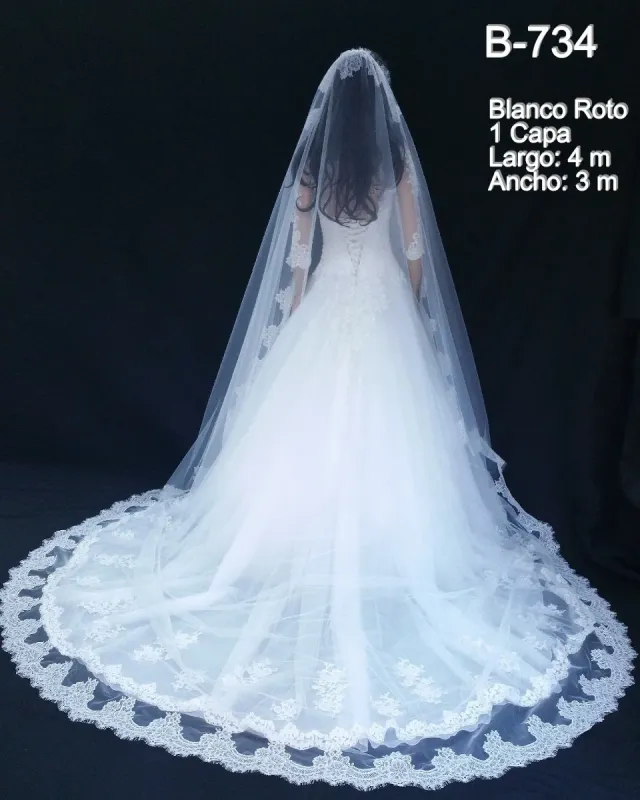 Velo Novia Encaje Chantilly 4m largo Blanco Roto