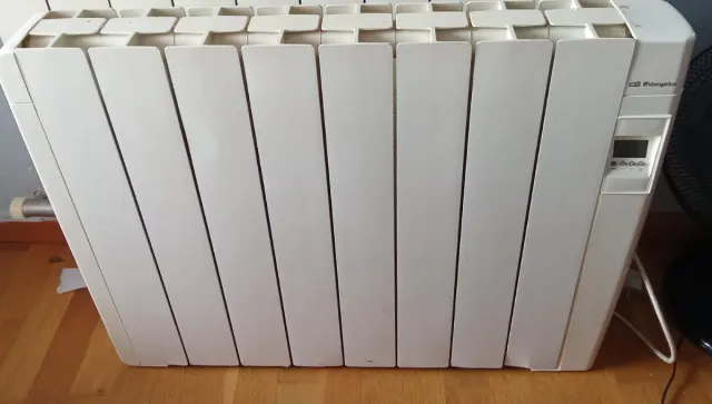 Radiador eléctrico de color blanco, con un diseño moderno y panel de control digital. - Panel de control digital. - Diseño de lamas verticales.
