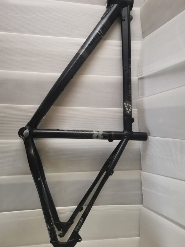 Detalles del productoHola, vendo este cuadro de aluminio de menos de 1kilo de peso, de una bicicleta rock rider 8.1. Tiene un golpe en un tirante del triangulo trasero, como se puede ver en la última foto. El tubo superior mide 53cm y el tubo del sillín 50,5cm, la pipeta de dirección mide 4,4 de ancho y 11cm de alto. Solo tiene anclaje para pinza de freno de disco. Una de las roscas del pedalier se ha tenido que limar unos 3 milímetros, pero ahora enrosca bien. Precio negociable. Tengo otro cuadro de acero de una Conor pro3000 sin óxido de color morado oscuro con el tubo superior y de sillín de 54,5cm, por el mismo precio.