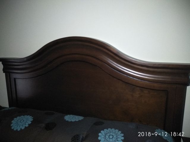 Detalles del productovendo dormitorio matrimonio compuesto por cabecero de 1.50cm, armario 6 puertas, dos mesitas y cómoda con espejo. madera maciza. (no entra colchón ni somier) Medidas del producto