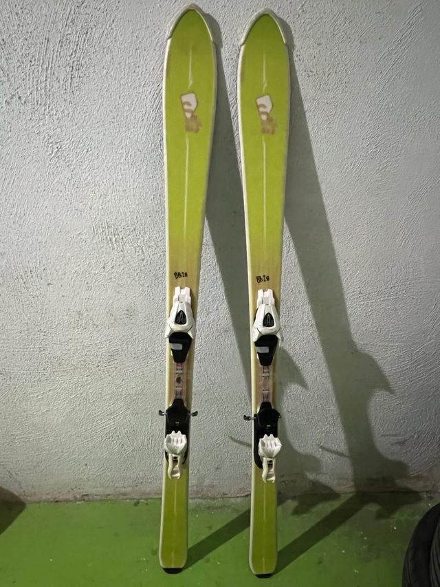 Están en buen estado, con marcas de uso normales pero sin ningún daño importante. Color verde, fijaciones sólidas y listos para utilizar esta temporada. Ideales tanto para principiantes como para esquiadores de nivel medio que busquen material económico y fiable