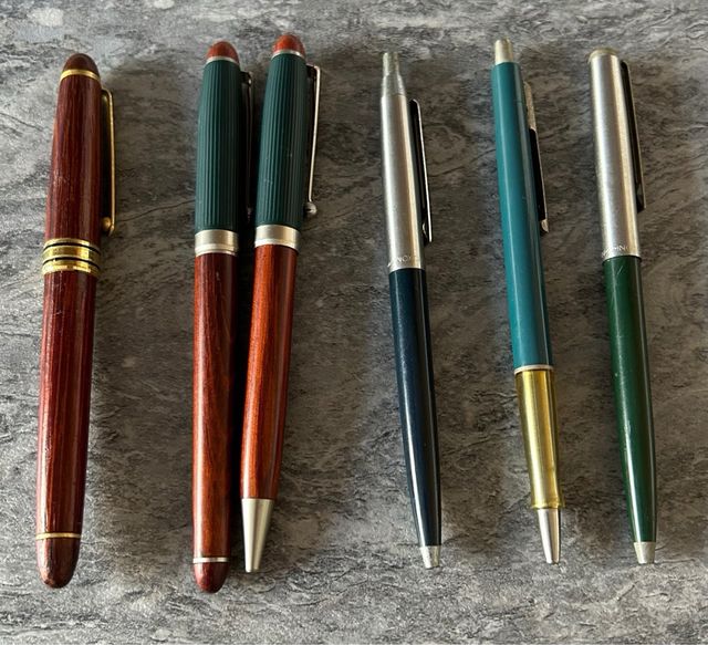 VENDO TRES BOLIGRAFOS, UNO DE ELLOS PARKER, Y DOS INOXCROM, UN CONJUNTO DE BOLIGRAFO Y PLUMA Y UNA PLUMA DE COLOR MARRON.