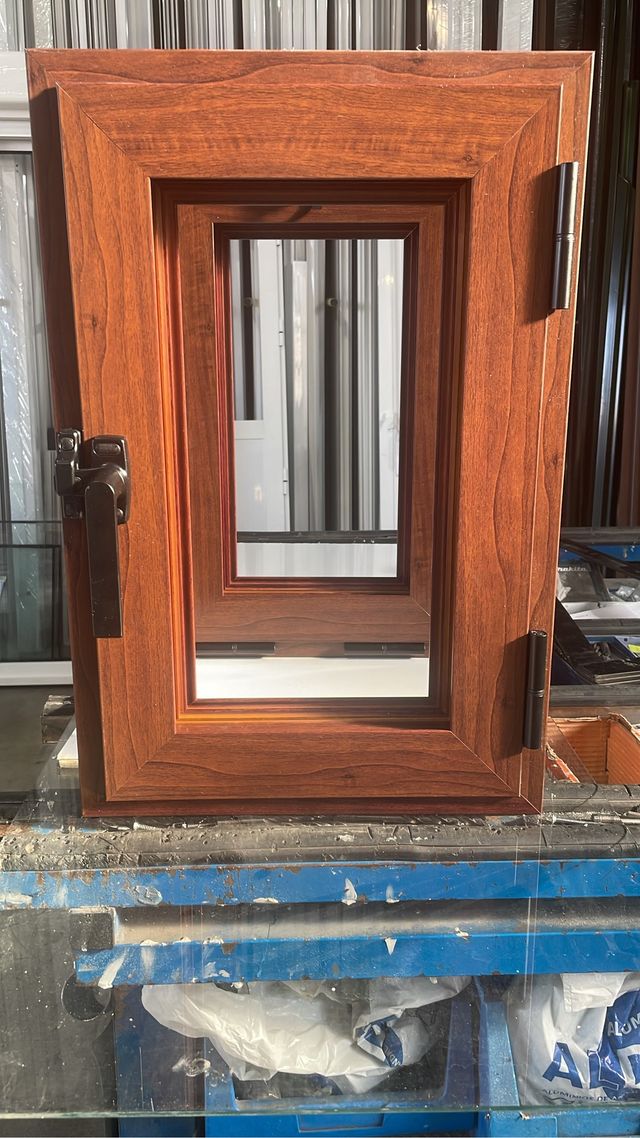 Detalles del productoVentana de aluminio abatible con un acabado en color nogal. Ideal para cualquier espacio.