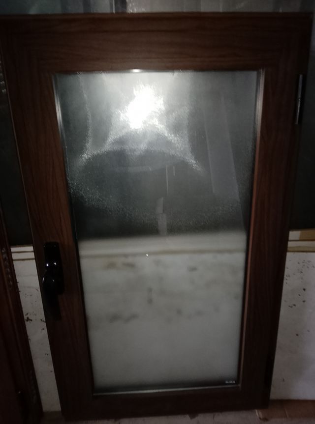 Detalles del productoVentana de aluminio con acabado en madera y cristal.