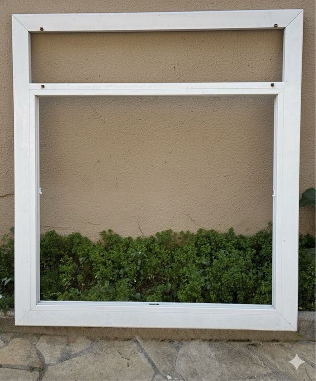 Detalles del productoMarco de ventana de aluminio en color blanco. Esta sucia de tenerla guardada. en la parte superior donde va la tapa hay 4 pequeños ganchos.