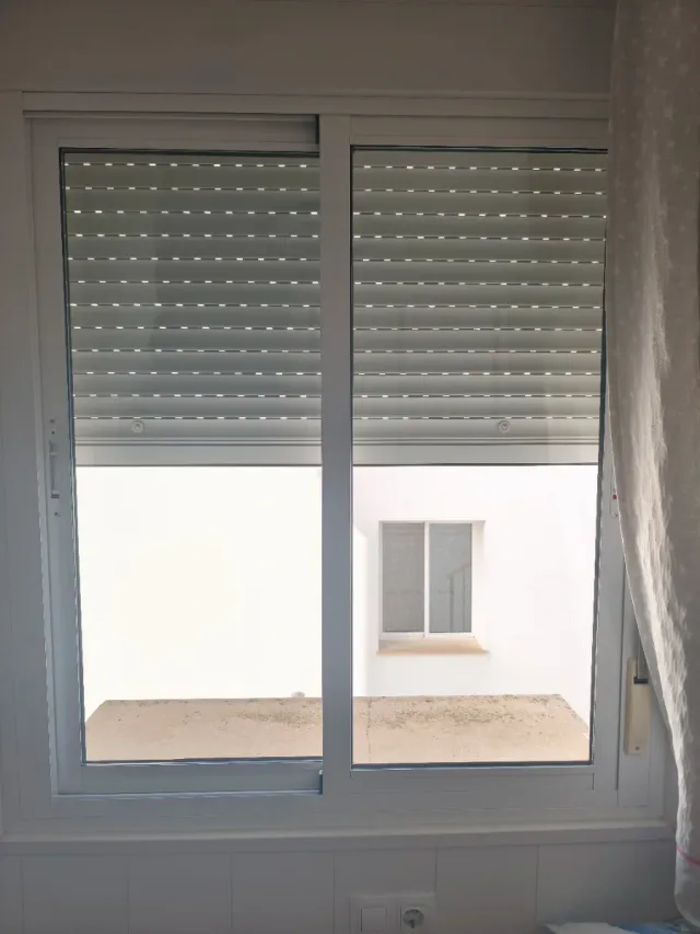 Ventana corredera de aluminio en color blanco. - Marco de aluminio resistente. - Diseño moderno y limpio. - incluye persiana - Medidas 1,40 alto x 1,14 ancho