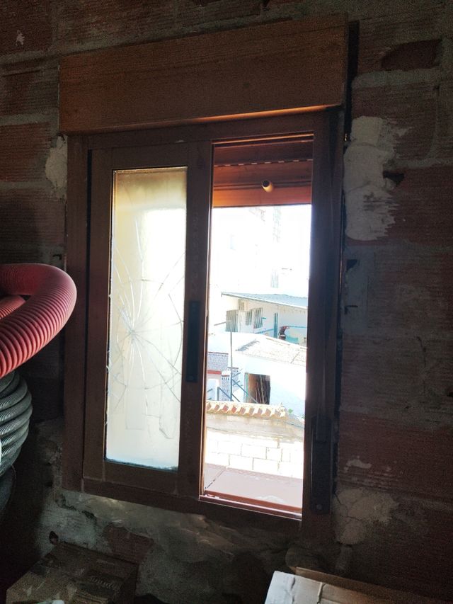 Ventana aluminio color madera, pequeña.