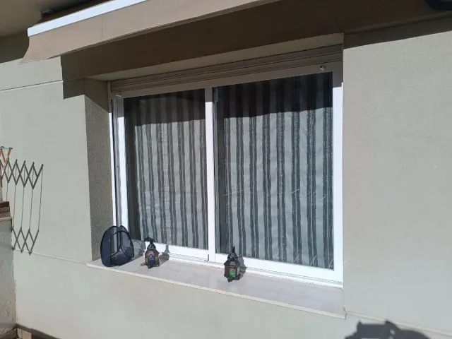 Detalles del productoVentana corredera de aluminio blanco con doble cristal.